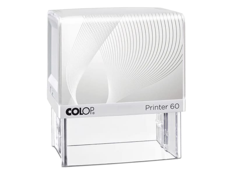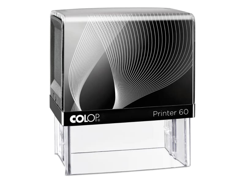 Der Colop Printer 60 mit einer Abdruckfläche von 76 x 37 mm und einer empfohlenen Zeilenanzahl von 8 Zeilen lässt sich hervorragend mit unserem Stempeldesigner gestalten