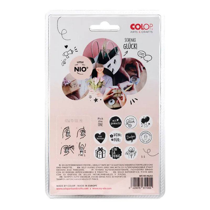 Stempelset zum kreativen Gestalten von Karten, Briefe, Einladungen. In diesem Set sind 10 verschiedene Stempelplatten enthalten, die zum Thema Deutsch passen. Die Anwendung ist sehr einfach. Das eingebaute Stempelkissen sorgt für bis zu 3000 Abdrucke in 100 % Abdruckqualität.
