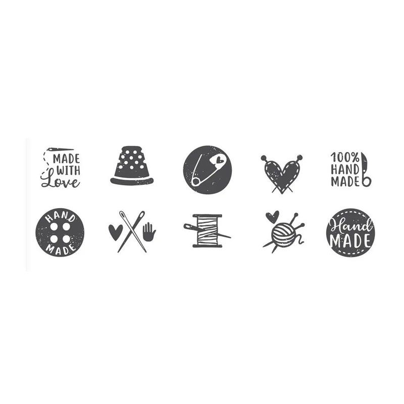 Stempelset zum kreativen Gestalten von Karten, Briefe, Einladungen. In diesem Set sind 10 verschiedene Stempelplatten enthalten, die zum Thema Handmade passen. Die Anwendung ist sehr einfach. Das eingebaute Stempelkissen sorgt für bis zu 3000 Abdrucke in 100 % Abdruckqualität.