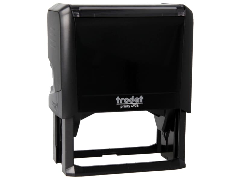 Der Trodat Printy 4926 mit einer Abdruckfläche von 75 x 38 mm und einer empfohlenen Zeilenanzahl von 10 Zeilen lässt sich hervorragend mit unserem Stempeldesigner gestalten. Ob Namens- oder Adress-Stempel, die Printy Line bietet für jede Anwendung das passende Produkt. Der Original Trodat Printy 4.0 ist klimaneutral und das serienmäßig. Das integrierte Stempelkissen trocknet nicht aus und kann, dank zwei speziellen Griffzonen, ohne Berühren des Farbspeichers, einfach und sauber ausgetauscht werden. Der Trodat Printy ist einer der kleinsten und leichtesten Selbstfärbestempel der Welt. Soft-touch-Elemente garantieren ein angenehmes und sicheres Halten des Stempels. Die neueste Printygeneration verfügt über ein glasklares Panoramasichtfenster, welches einen exakt platzierten Abdruck ermöglicht. Die transparenten Bodenkanten erlauben ein präzises Ausrichten am Dokument.