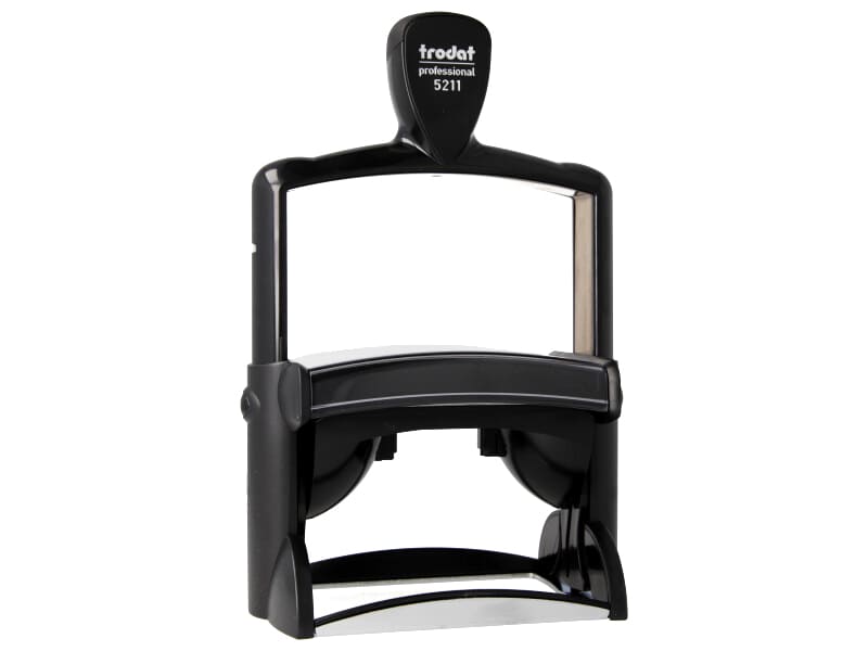 Der Trodat Professional 5211 mit einer Abdruckfläche von 85 x 55 mm und einer empfohlenen Zeilenanzahl von 14 Zeilen lässt sich hervorragend mit unserem Stempeldesigner gestalten. Der Trodat Professional bietet höchsten Bedienkomfort und liegt dank ergonomisch geformtem Griff optimal in der Hand. Der garantiert saubere und präzise Abdruck erfolgt in einer weichen, runden Stempelbewegung. Der robuste Stahlkern garantiert eine extrem lange Lebensdauer und höchste Stabilität für die vielfältigen Anforderungen im Büroalltag. Ein Kissenwechsel ist ohne Berühren des Farbspeichers möglich und durch die Bandabdeckung bleiben bei der täglichen Datumseinstellung die Finger sauber.